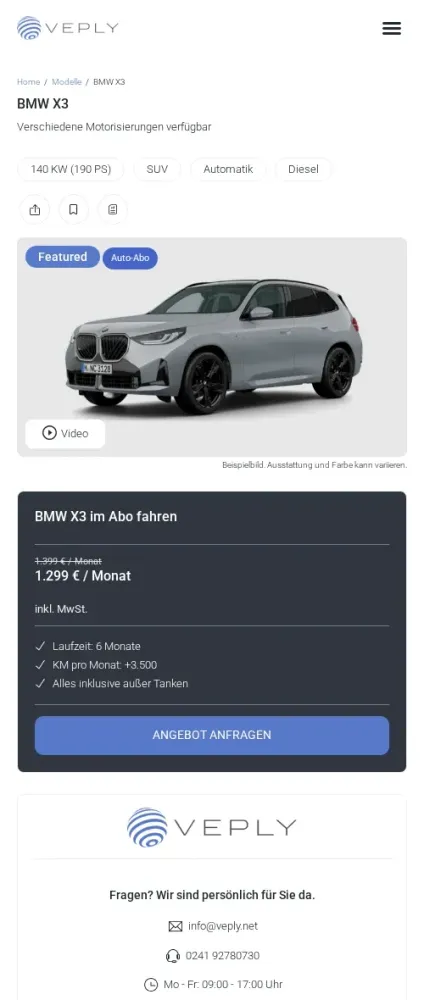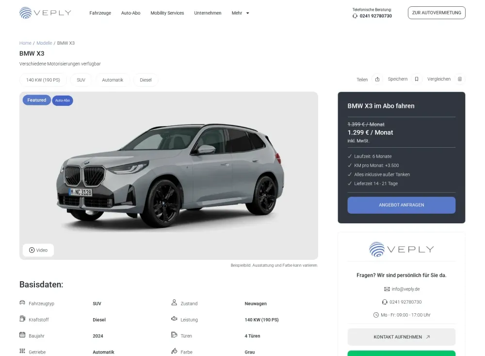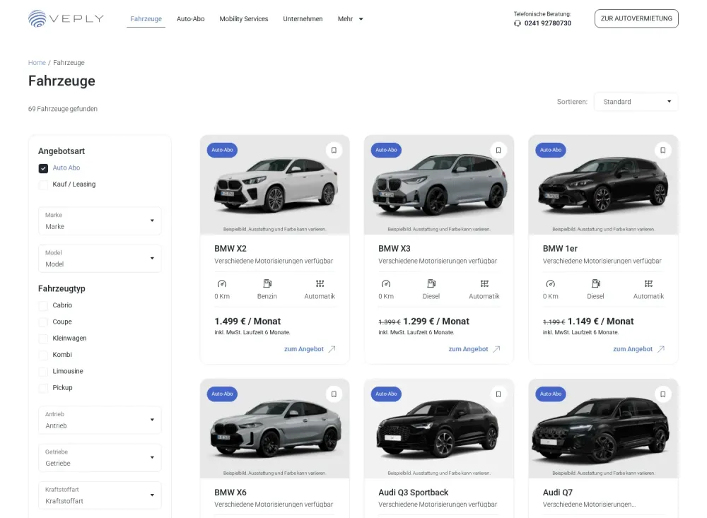 Neben der Vermietung, dem Leasing und dem Autohandel gehören auch Auto Abos zum umfangreichen Portfolio des Unternehmens. Auch wenn es um die Wartung und die Reparatur von Fahrzeugen geht, ist Veply ein verlässlicher Ansprechpartner.