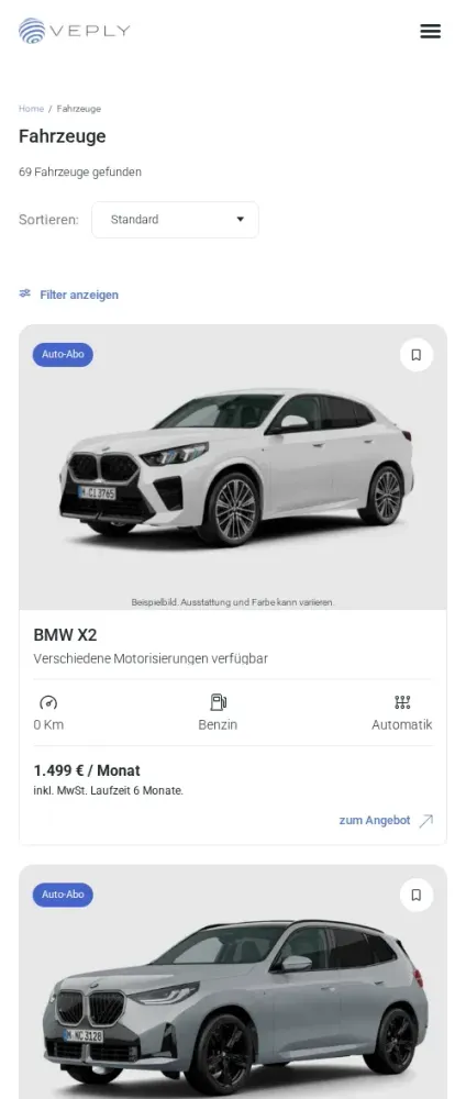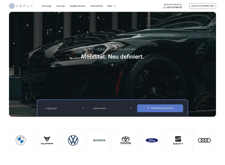 Der Mobilitätsdienstleister Veply bietet seinen Kunden individuelle Lösungen rund ums Auto. Auf Basis einer langjährigen Erfahrung aus der Vermietung, dem Verkauf und der Begutachtung von Fahrzeugen entwickelten die Inhaber ein breites Angebot an Dienstleistungen. Diese stehen derzeit ausschließlich Gewerbekunden zur Verfügung.