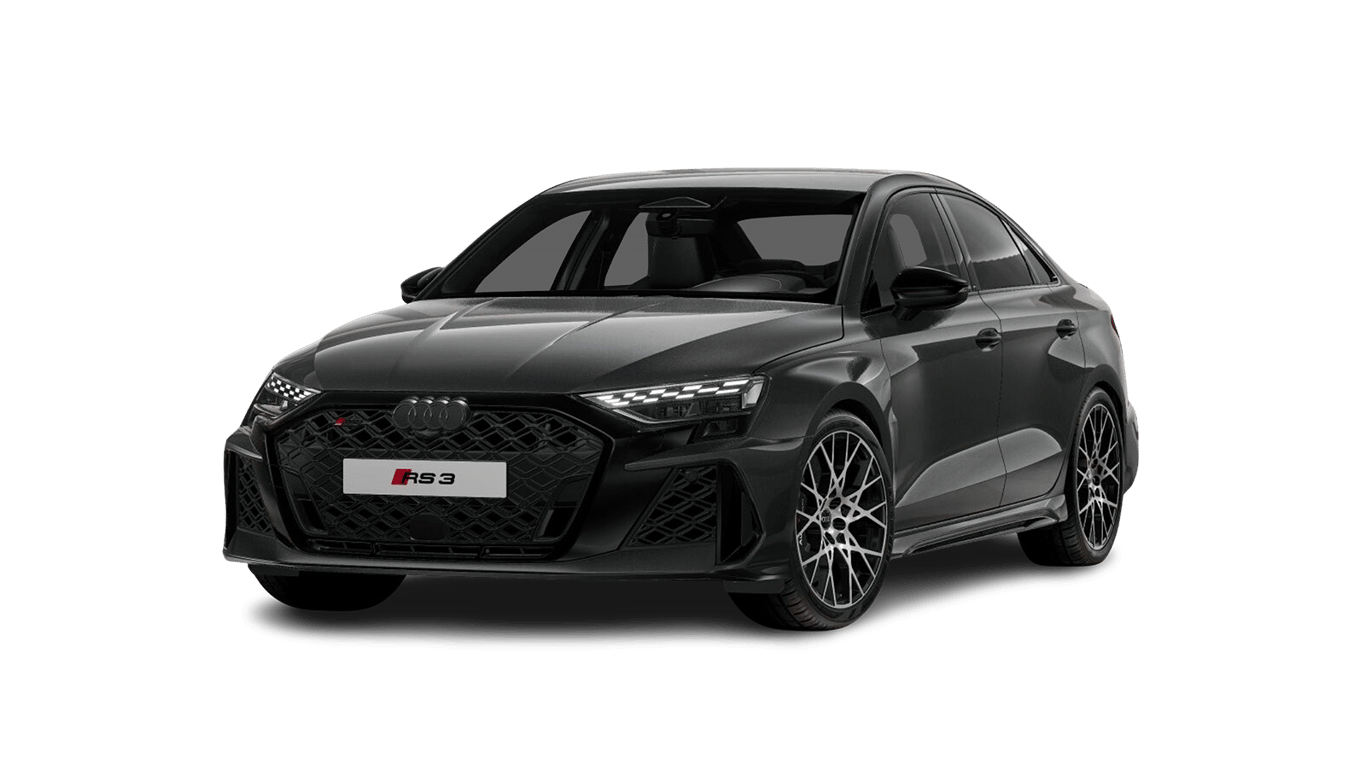 - Optikpaket schwarz plus [RS 3-Emblem in Schwarz / Zierleisten an den Seitenscheiben in Schwarz / Audi Ringe vorn und hinten in Anthrazitgrau]