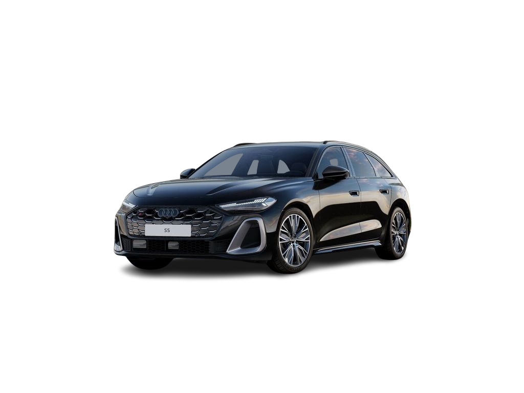 (gegenüber dem Audi A5 mit Standardfahrwerk) / verbreiterte Schwellerleiste in Schwarz / Außenspiegelgehäuse in Wagenfarbe / Fensterzierleisten Aluminiumoptik / Dachreling Aluminiumoptik (nur für A5 AvantStoßfänger S line / S-Diffusor in Phantomschwarz / Einleger Diffusor in Chromoptik matt anthrazit] - Modellkennzeichnung am Heck
